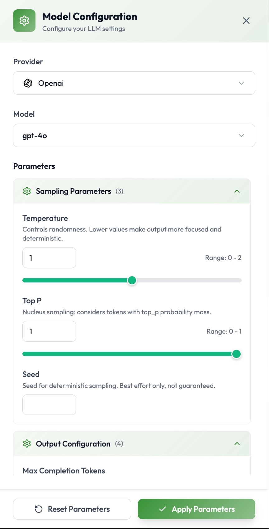 A user enables specific tools for a prompt designed to handle structured tasks, ensuring the model operates within defined boundaries during execution.